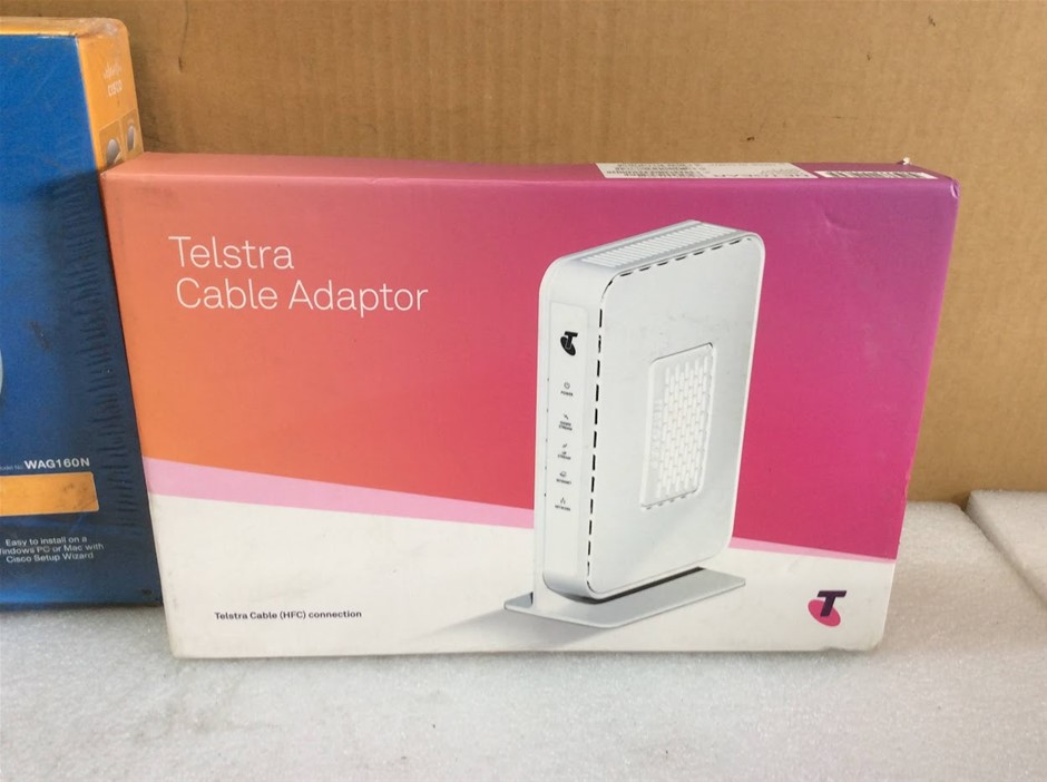 Linksys WAG120N Wireless-N ADSL2+ Modem Router + Telstra Cable Adaptor Network Device + Telstra Cable Adaptor Network Device - New (Lot of 4)