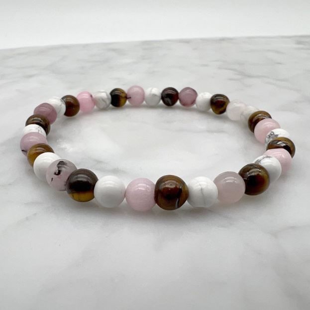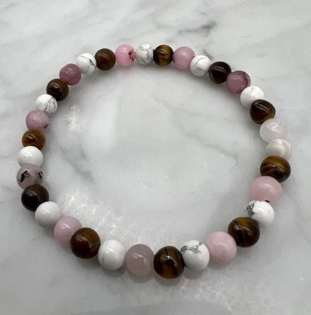 6mm Cherry Blossom Jasper, Howlite & Tiger Eye Stretch Beaded Bracelet
