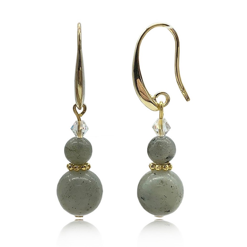 Exquisite Natural Round Labradorite Gemstones Adorned with Swarovski® Crystal Beads Earrings.