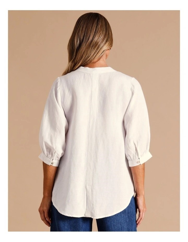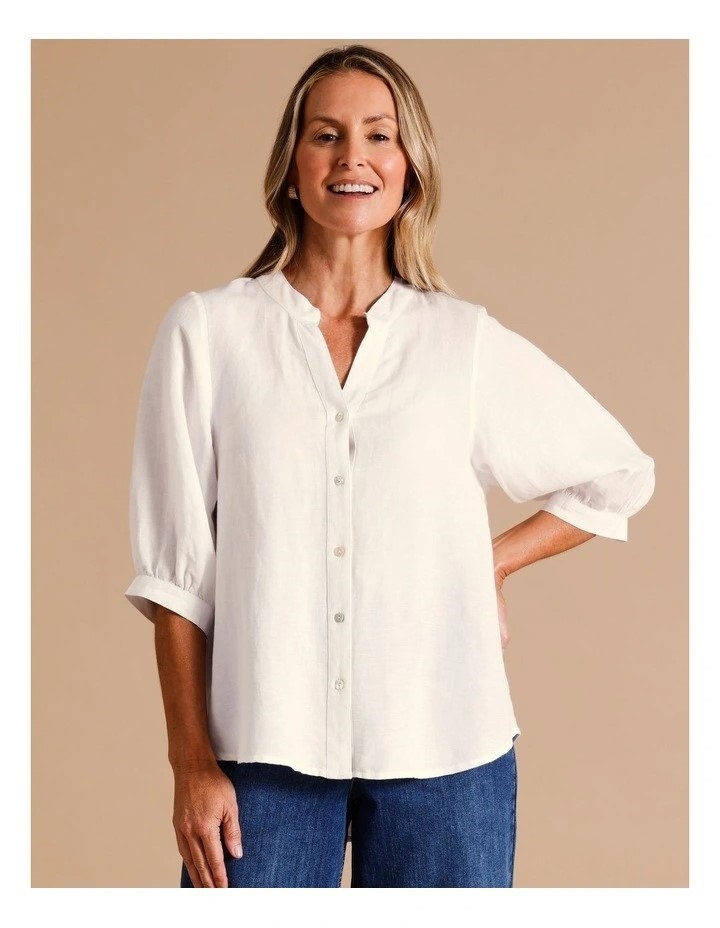 REGATTA European Linen Blend Short Puff Sleeve Shirt With Split Back. Size: 16. Colour: White. NB: Slight Shop Stain. (Code: MYER4549) (331841-59)