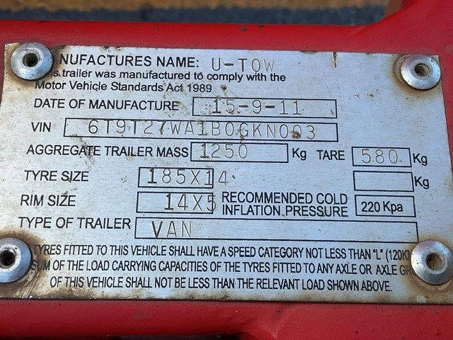 2011 U-Tow Van Dry Freight Van Trailer