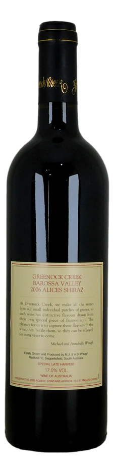 Greenock Creeks Alices Shiraz 2006 (1x 750mL), SA.