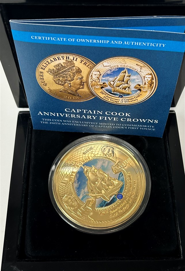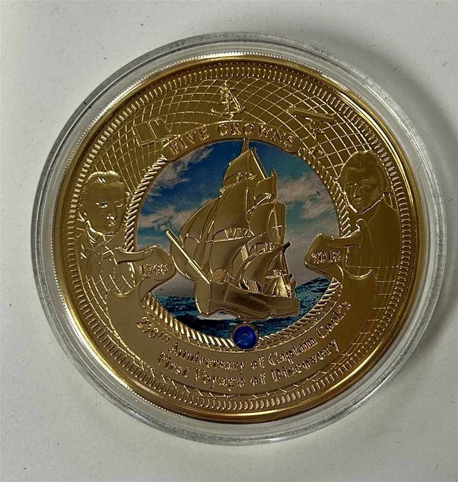 The Bradford Exchange 2020 ``250th Anniversary of The Voyage of Discovery Gold Five Crowns`` Layered 24ct Gold Limited Edition Proof Coin 89/1770