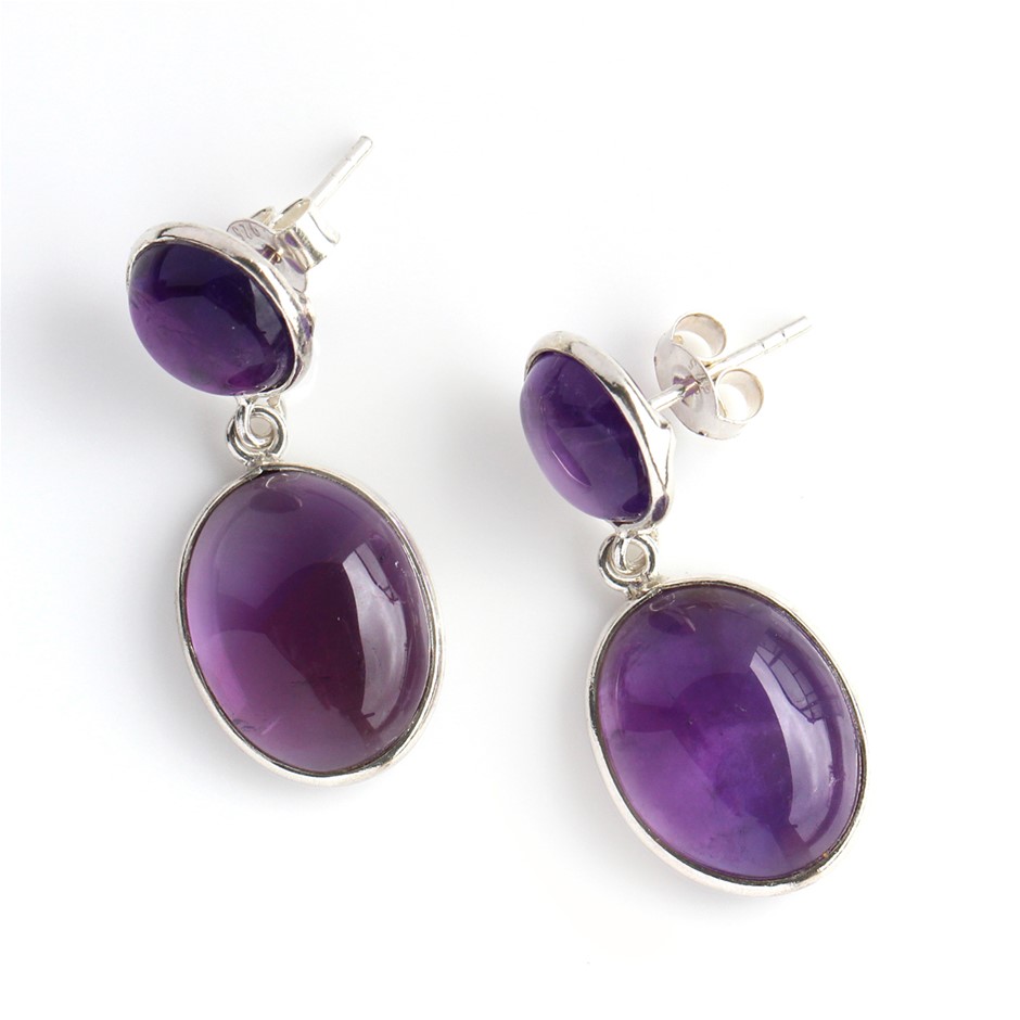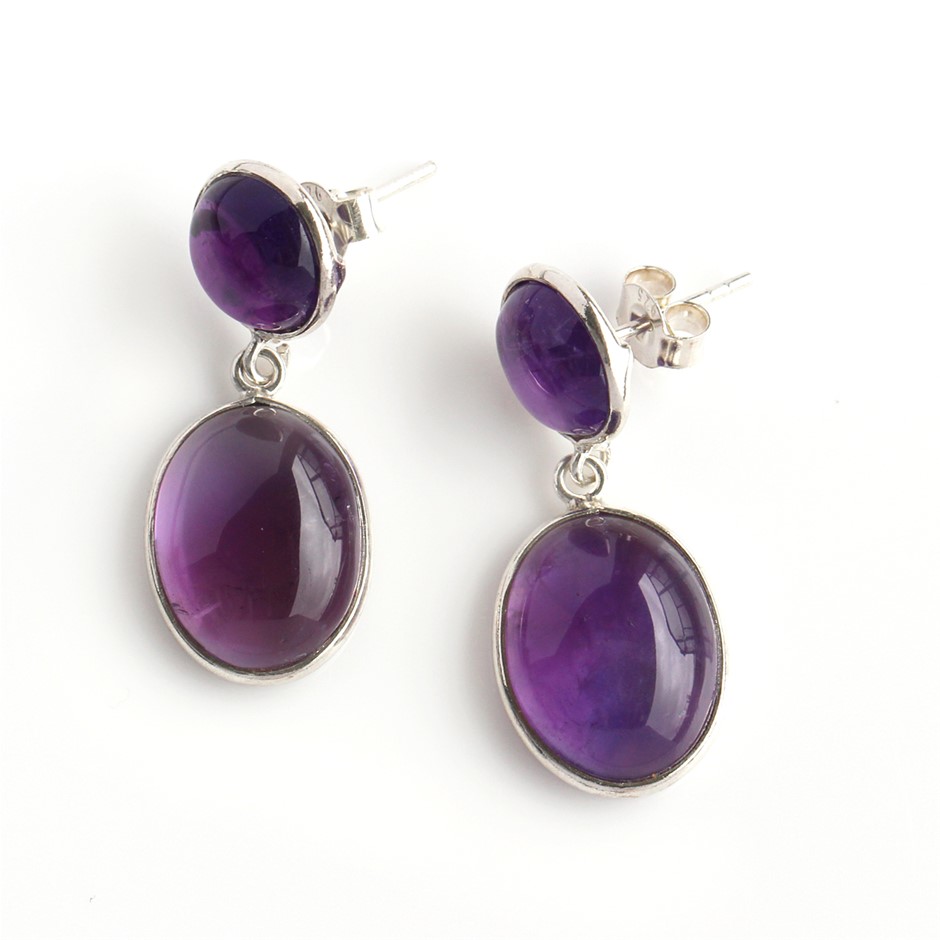 Beautiful 24 Cts Amethyst Handcrafted 925 Sterling Silver Gemstone Drop Earrings