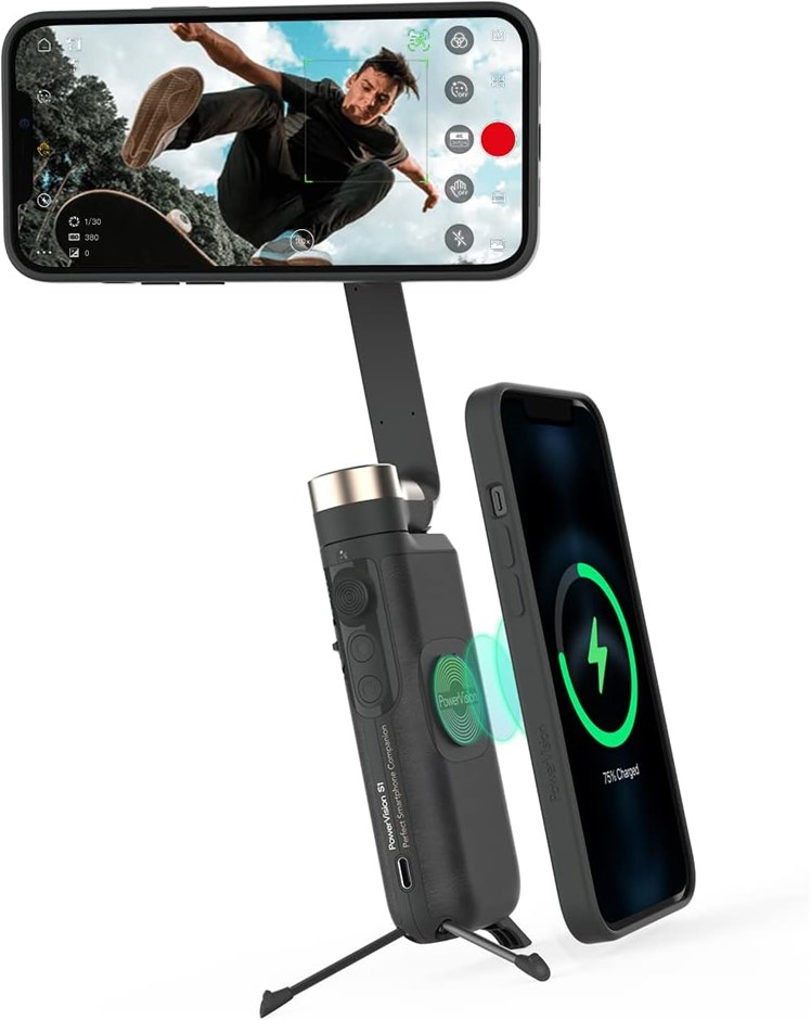 POWERVISION S1,Smartphone Gimbal - Portable, Wireless Charging, 3-Axis Stabilization, Face Tracking, Gesture Control, Anti-Shake, Compatible with YouTube/TikTok/Vlogging (Car Mount Kit, Black). Buyers Note - Discount Freight Rates Apply to All Regional Areas(Code: B097NZMN33) (333472-60)
