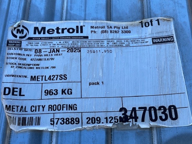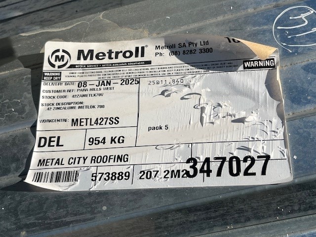 Metlock, Cliplock Zincalume Sheeting, Qty x 20 Sheets