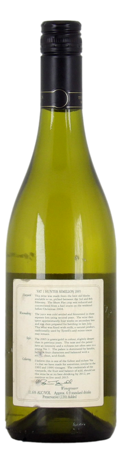 The **Tyrell’s Vat 1 Semillon 2005** is a beautifully mature Hunter Valley Semillon, showing bright, lifted aromas of lemon, lime, and subtle floral notes with a touch of honeyed richness from age. The palate is crisp and finely textured, with zesty citrus flavors balanced by a delicate, nutty complexity and a long, clean finish. Despite its age, it retains vibrant acidity, making it a classic, elegant expression of Hunter Valley Semillon.