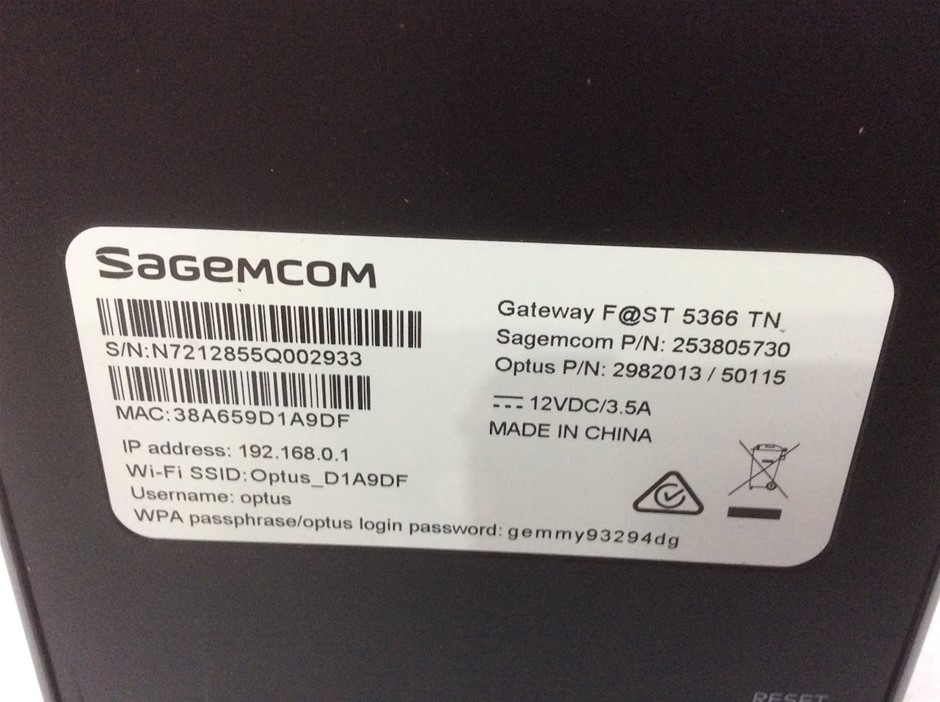 Sagemcom F@ST 5366 TN Optus Gateway Router