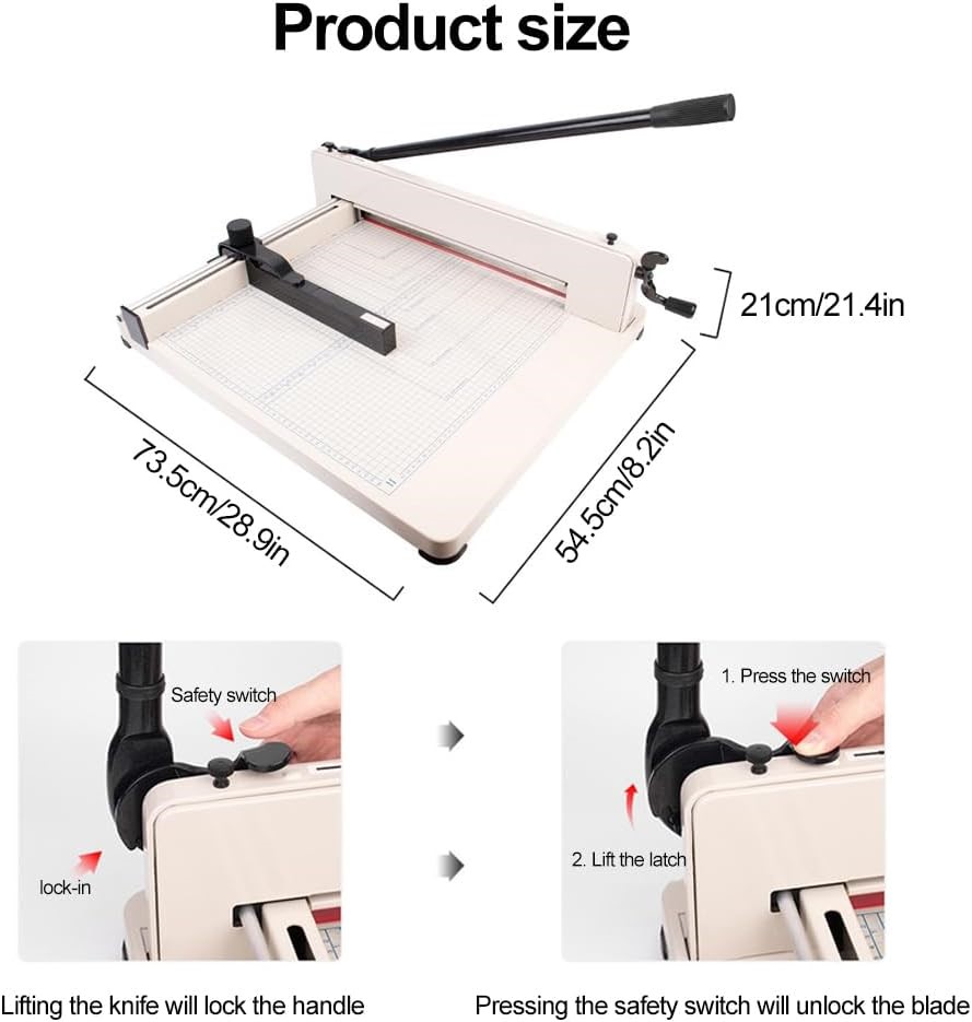 HELANZER Heavy Duty Guillotine Paper Cutter A3 17`` 400 Sheet, Double Safety Protection for Paper/Leather/PVC, Office/Print Shop (White-A3). (Code: B0FD2LGG9Q) (334064-62)