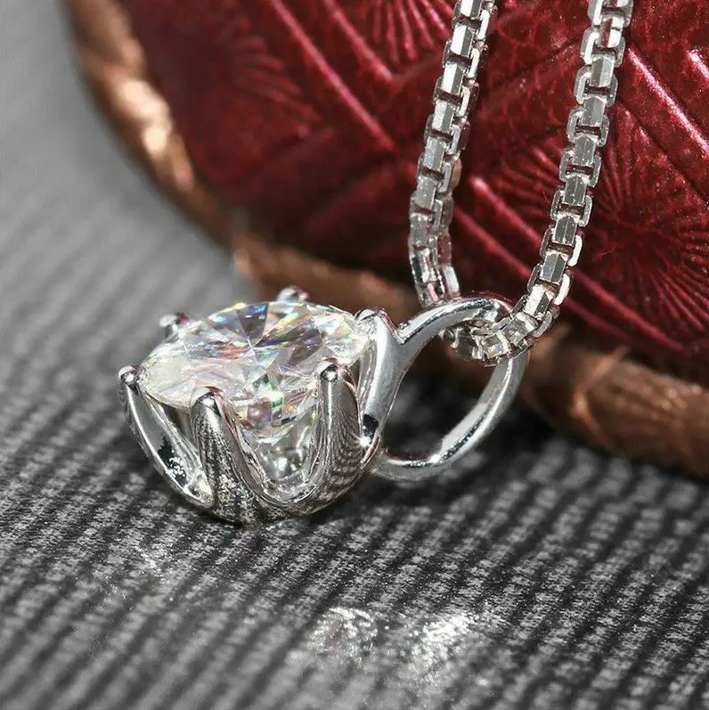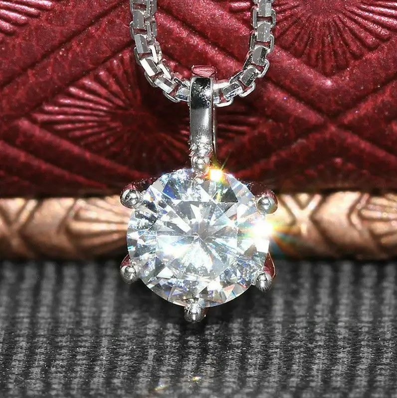 Elegant 18K White Gold plated Diamonds & White Cz Pendant Wedding Necklace.
