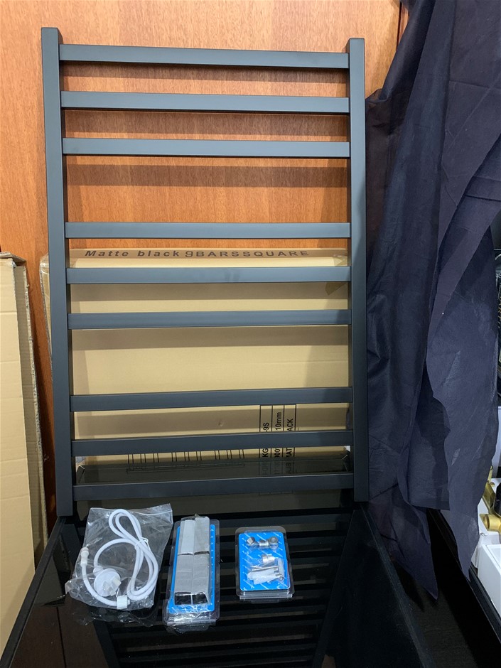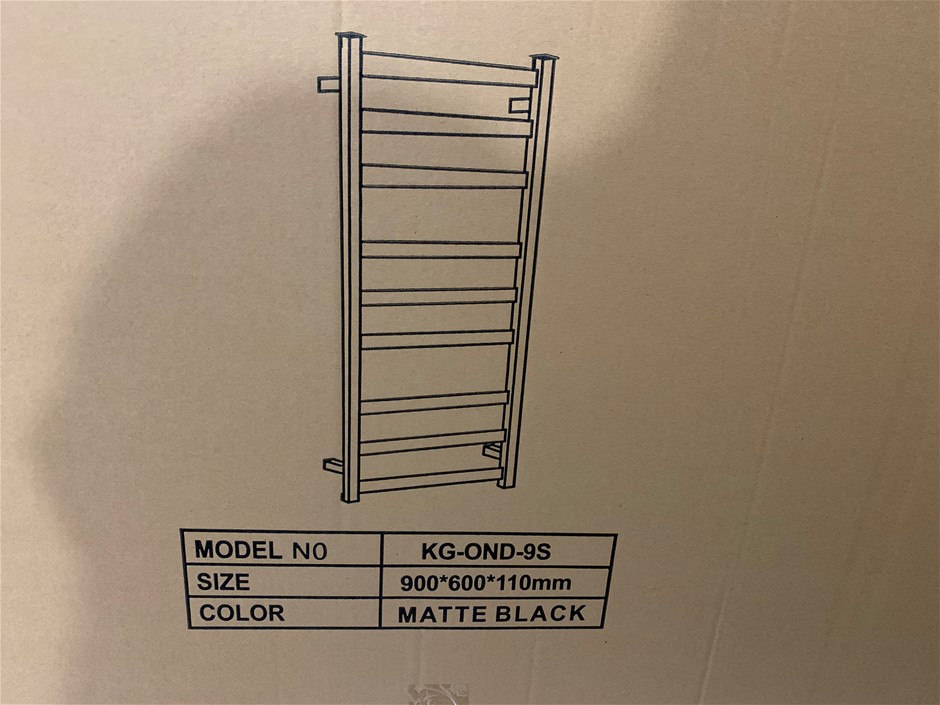 New in Box KG-Lighting 9 Rail Electric Towel Rail, Matt Black