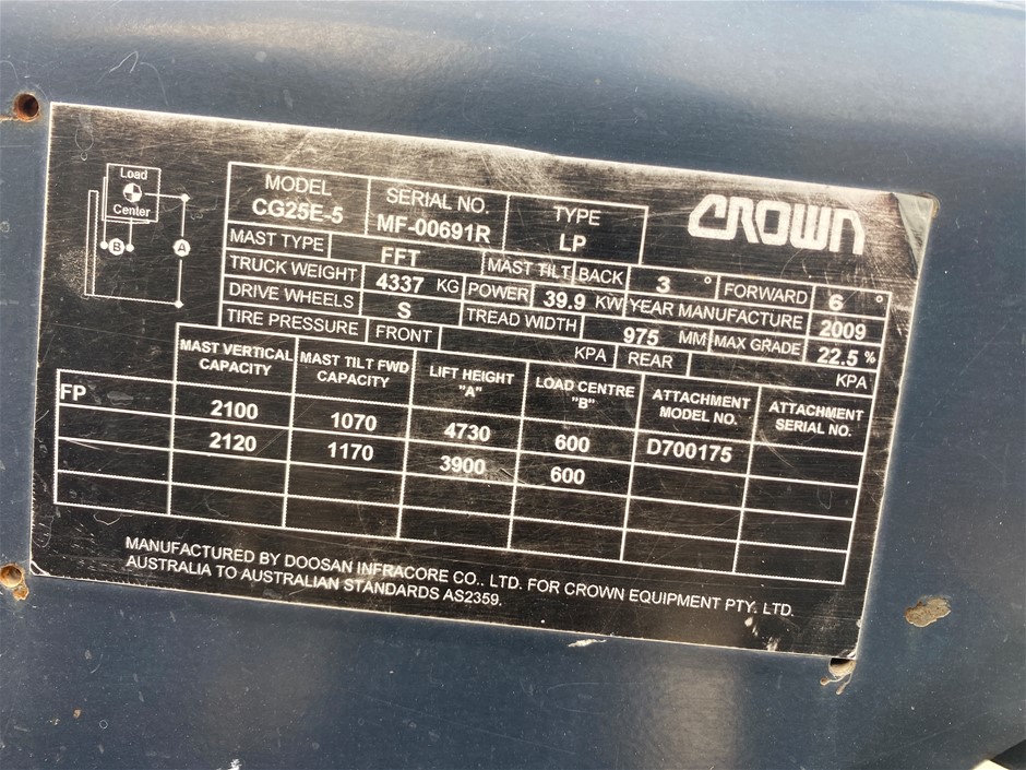 Crown CG25E LPG Counter Balance Forklift