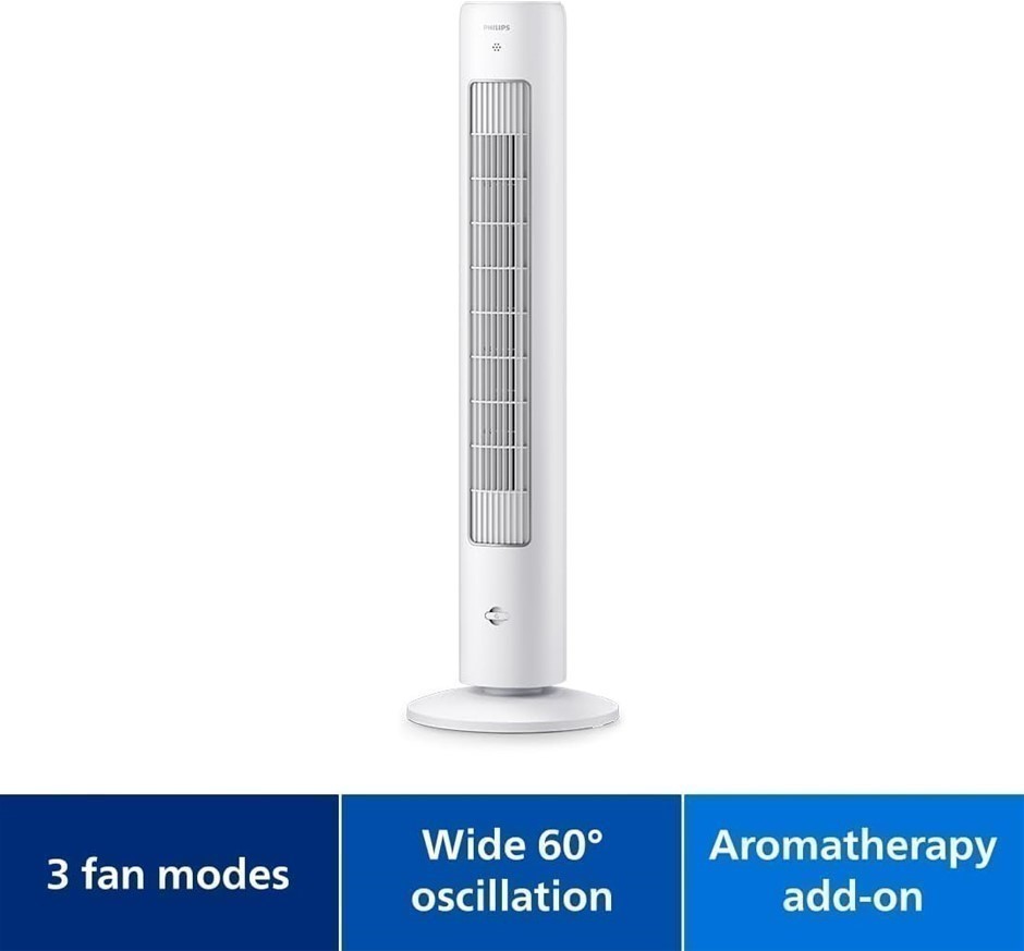 PHILIPS Oscillating Tower Fan 5000 Series, 105cm Slim Design, Remote control, Timer, 3 Speeds, 3 Modes, 40W, Powerful Yet Quiet Airflow, Suitable For Aromatherapy, White (CX5535/00). (Code: B0D9P3V248) (331979-64)