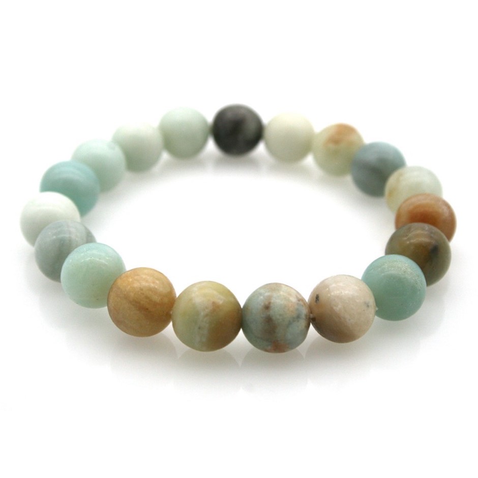10mm Natural Gorgeous Semi-Precious Amazonite Gemstones Beaded Bracelet.