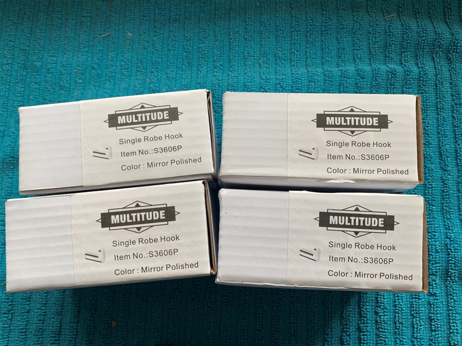 New in Box Multitude Robe Hooks, Mirror Polished - Quantity 4