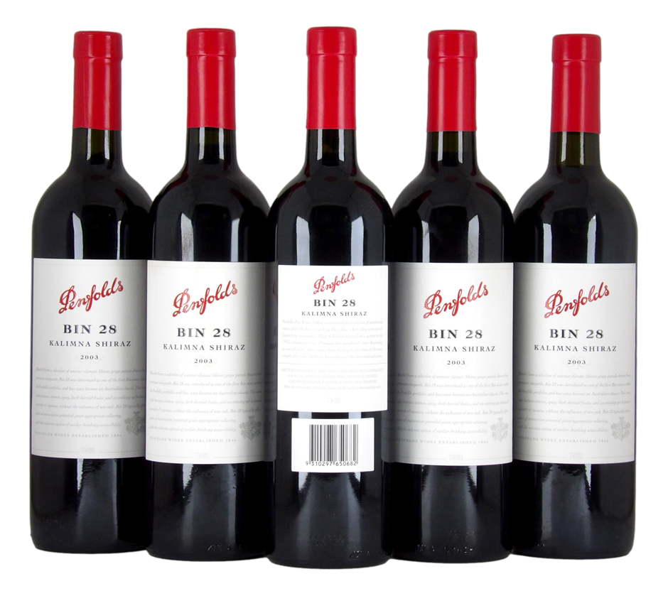 Penfolds 'Bin 28' Kalimna Shiraz 2003 (5 x 750mL), SA.