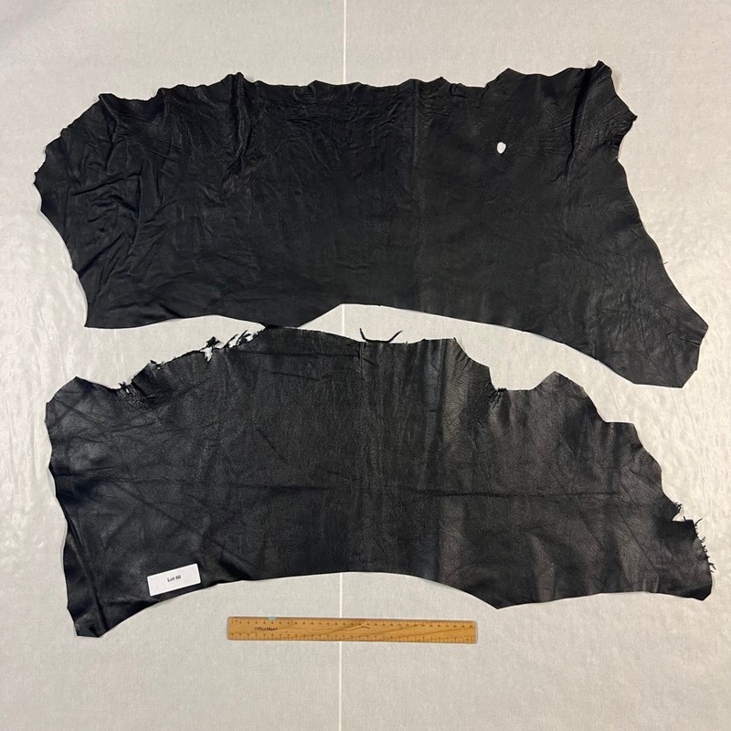 Approx. 7sqft Assorted Black Colour of Genuine Half-Hide Lambskin Nappa Leather Hides - 2Pcs.
