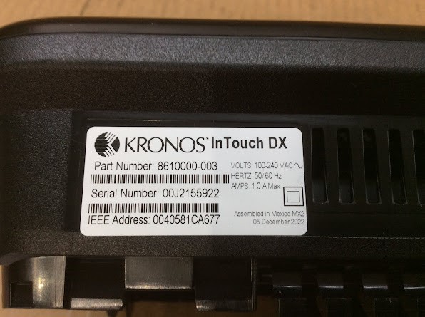 Kronos InTouch DX Time Clock Terminal