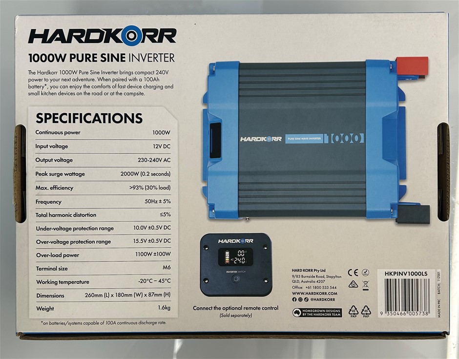 Hardkorr 1000W Pure Sine Power Inverter.