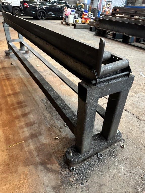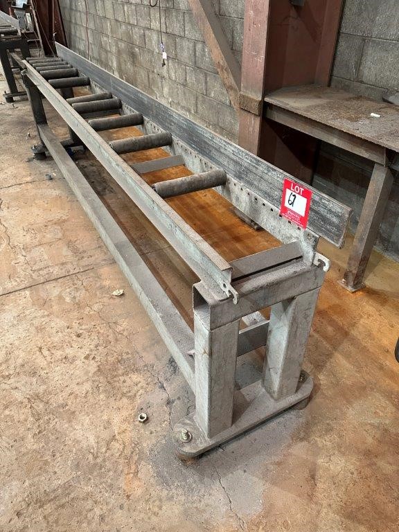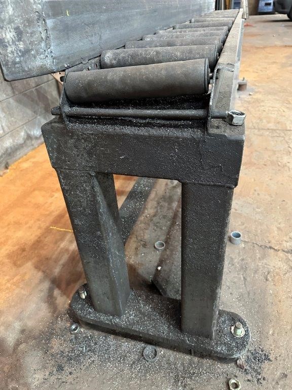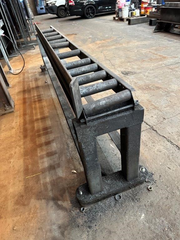 Fabricated metal infeed roller conveyor bench