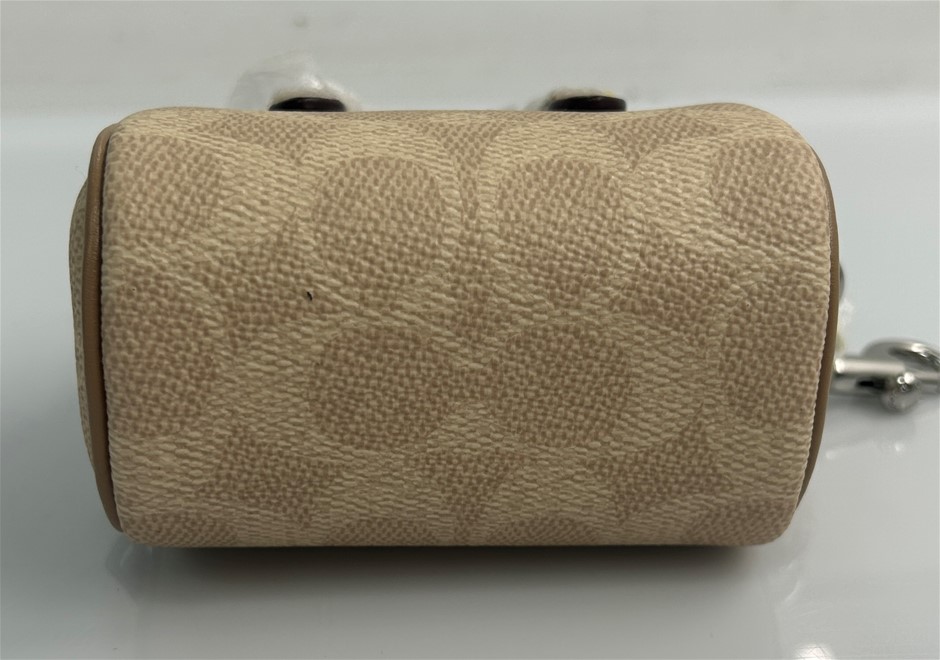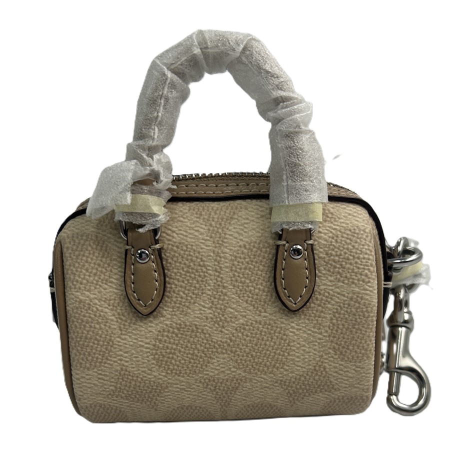 Coach mini top handle bag, beige signature coated canvas with smooth leather trim and silver-tone hardware