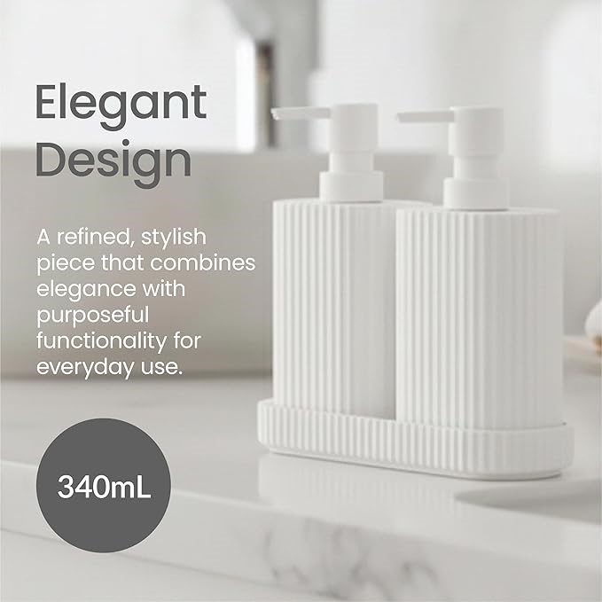 Eco Basics Wash Station Duo White – Resin Soap Dispenser Set with Drain Tray & Anti-Slip Base, 2 Pump Bottles for Soap, Shampoo, Conditioner, Dish Liquid, Shower Gel – Bathroom, Kitchen & Laundry (Code: B0FS6TT1Z2) (139655-68)