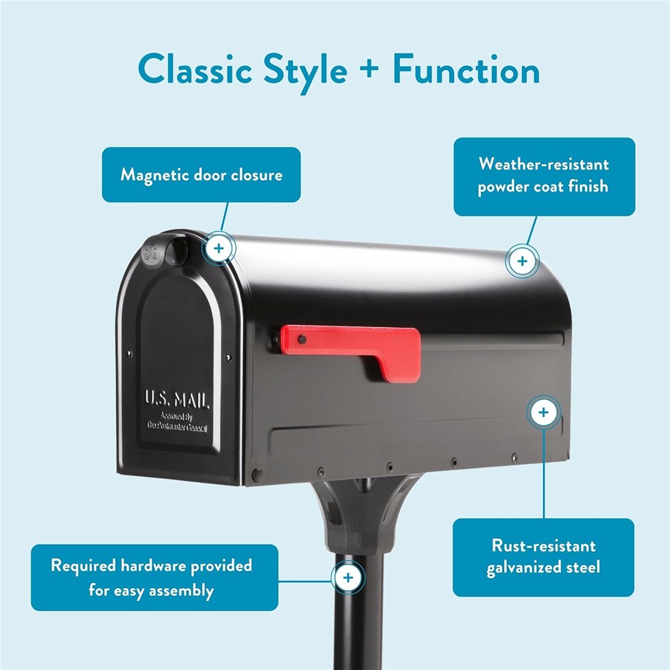 ARCHITECTURAL MAILBOXES 7680B-10 MB1 Mount Mailbox and In-Ground Post Kit, Medium, Black. (Code: B0796JXZJS) (334210-68)