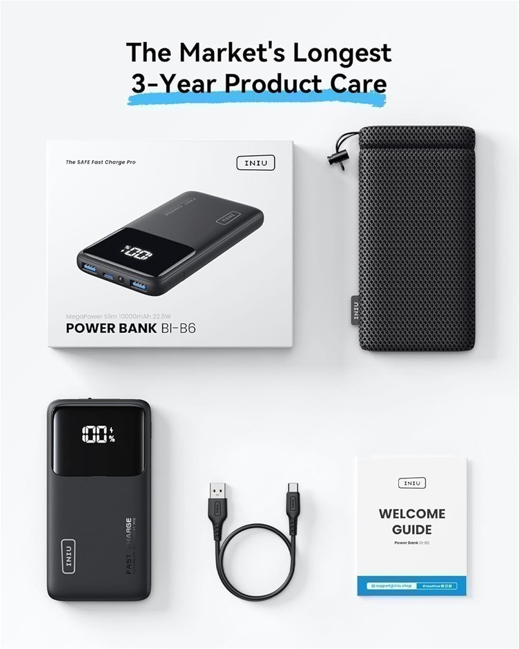 INIU 22.5W Power Bank, 10000mAh Slim USB C Portable Charger Fast Charging PD3.0 QC4.0, LED Display Battery Pack Portable for iPhone 16 15 14 13 12 Pro Max Samsung S22 Google LG AirPods Switch iPad. Buyers Note - Discount Freight Rates Apply to All Regional Areas(Code: B08K7GHZ3V) (333472-69)