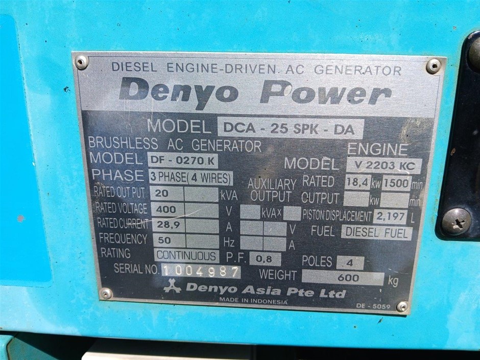 • Denyo Power DCA-25SPK-DA Trailer Mounted Generator