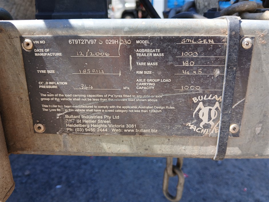 • Comments: Trailer. TARE MASS: 180 kg. ATM: 1000 kg. Tyre Size: 185R14C. Rims: 5 Stud