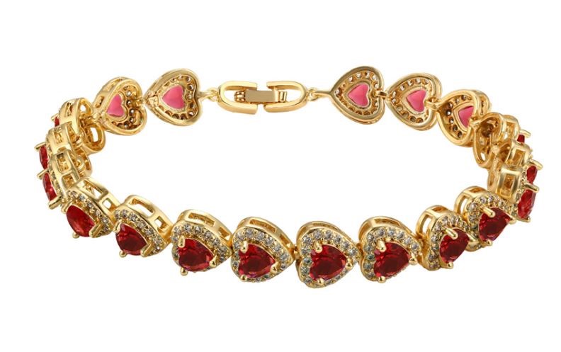 Italian 18k Triple Gold Plated Bracelet with Heart cut Ruby Cubic Zirconia Stone.