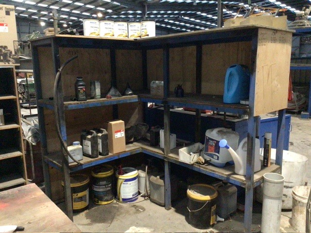 Metal Framed Corner Shelving Unit And Contents