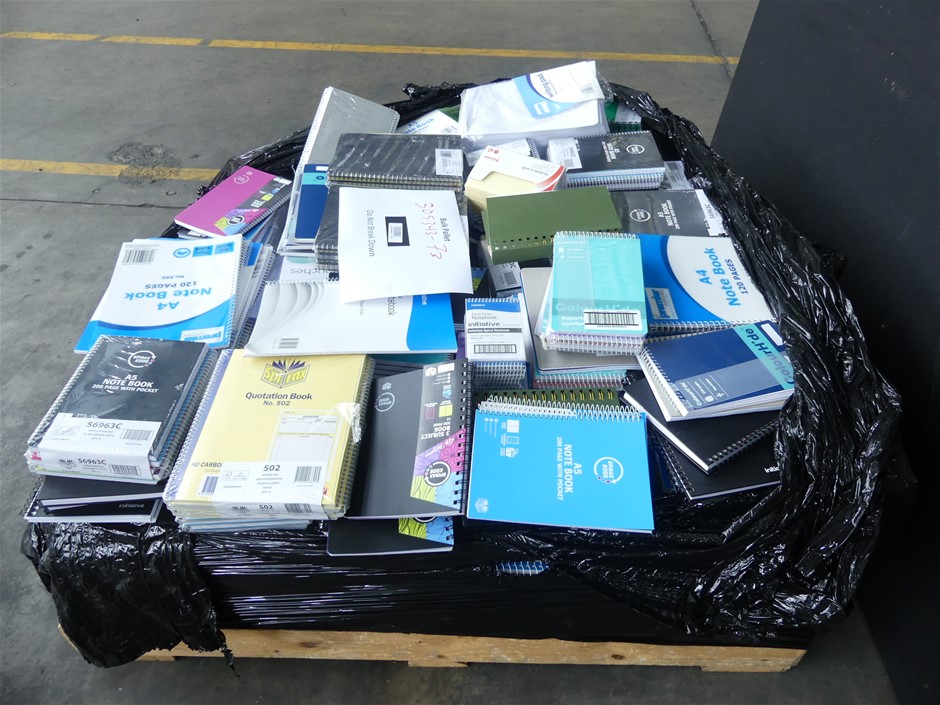 • Approximate Includes: Unknown Quantity of A4 Note Book 120 Pages, initiative A4 sprial notebook 120 PAGES, 3 Subject Book 200 Page, A5 Note Book 200 Pages, A5 Note Book 200 Pages with pocket, initiative sprial notebook pack of 20 96 page, Quotation book 50 duplicates 56502 qty 5, A5 2023 Day to day Recycled Diary, Colourhide 200 pages with pen holder and more