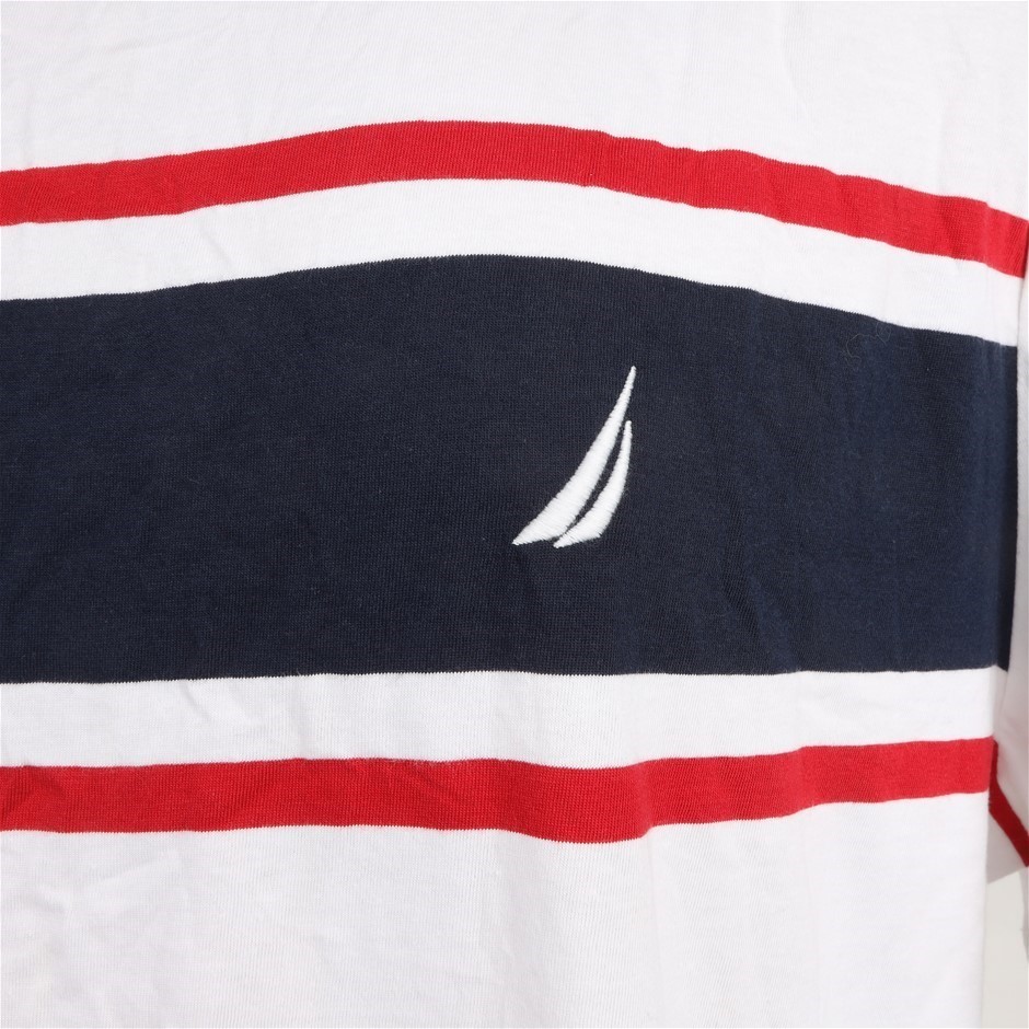 NAUTICA Men`s Tee, Size 2XL, Cotton, White/Red/Navy. Buyers Note - Discount Freight Rates Apply to All Regional Areas(Code: CC87186) (331993-70)