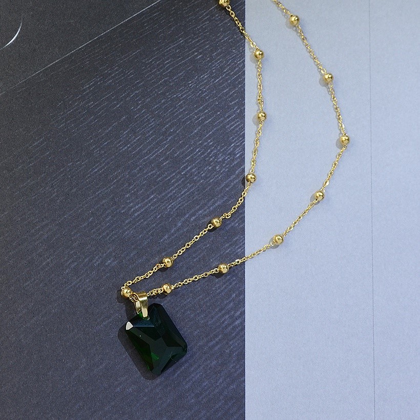 This Necklace is made from an Elegant 18K Yellow Gold plated Simulated Emerald Necklace For Women