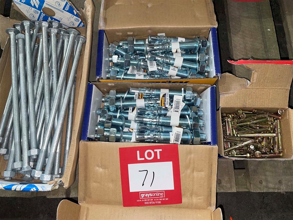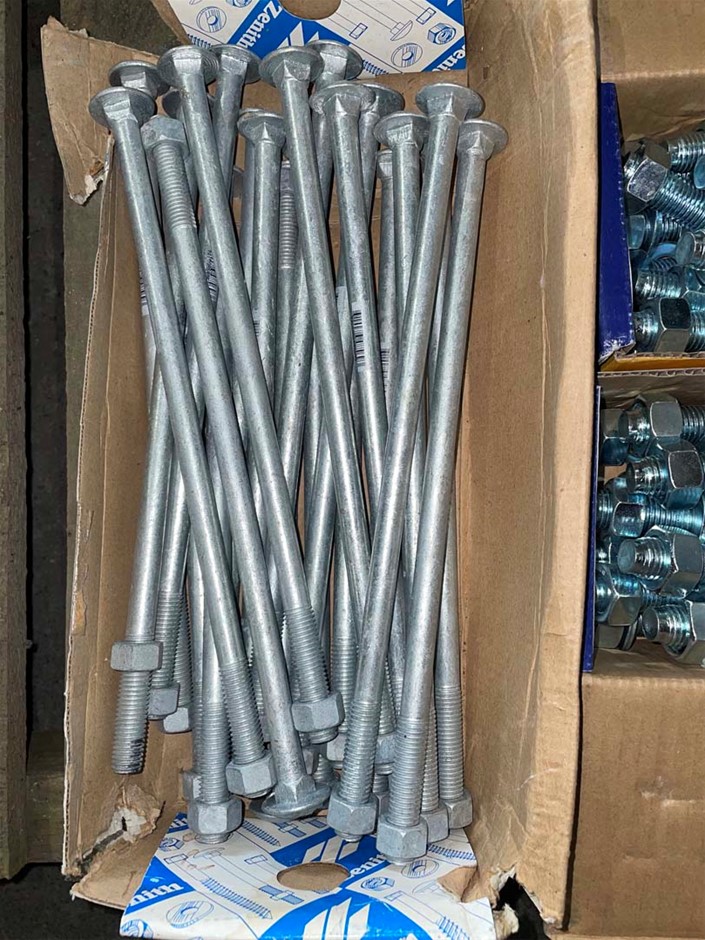 Qty Fasteners, inc. Qty Gal 300mm Bolts (Zenith), Qty Masonary Fasteners, (Containers not included. Ex-Retail stock, may show signs of shop-soil)
