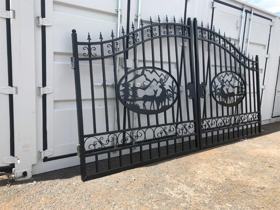 Set of 2 Small Wrought Iron Style Gates with Wildlife Scene (Unused),
