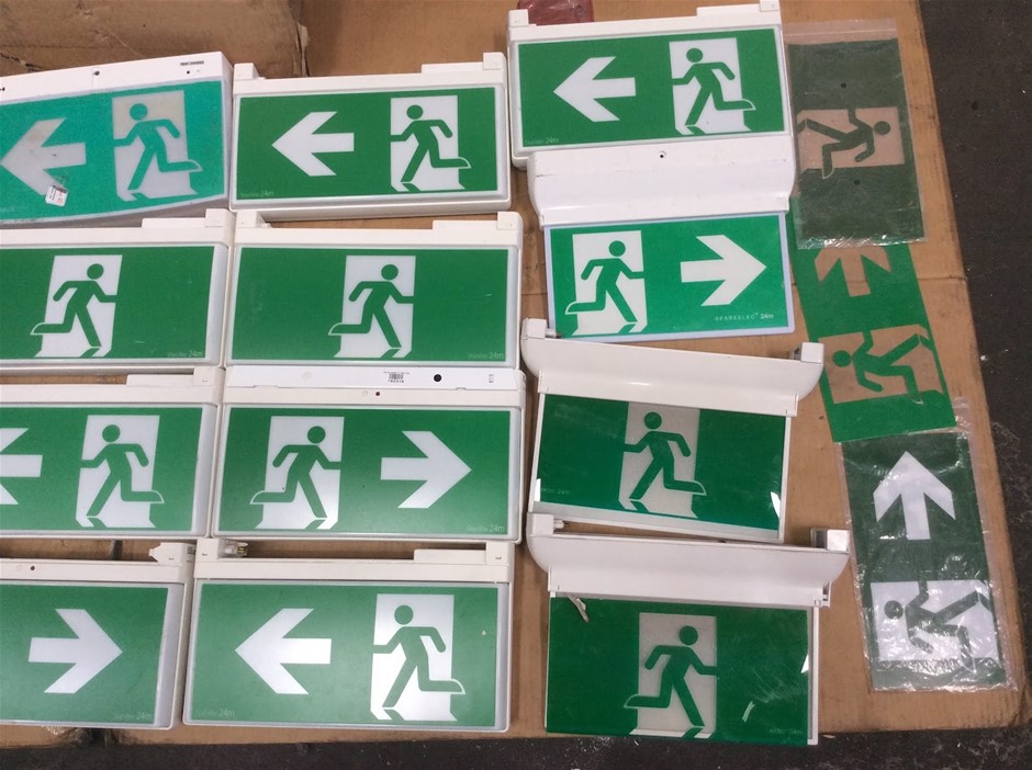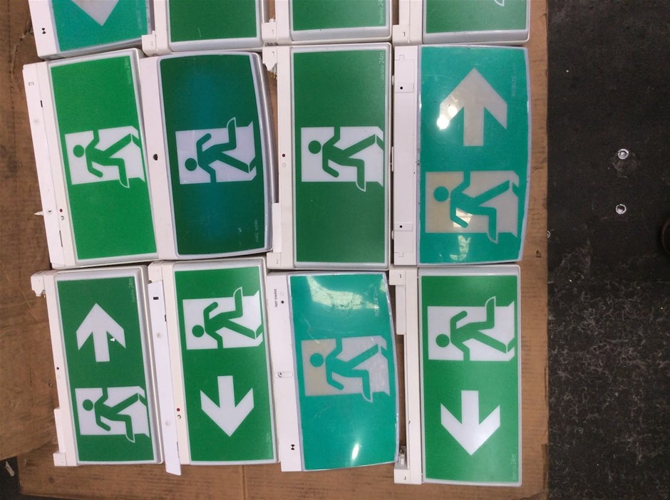 Mixed Brand LED Emergency Exit Signs With Directional Arrows