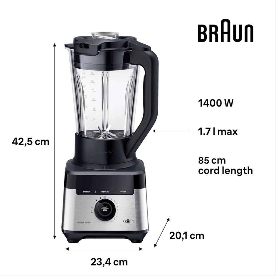 BRAUN PowerBlend 7 JB7550BK, Jug Blender with Triangular Glass Jug, 10 Spee