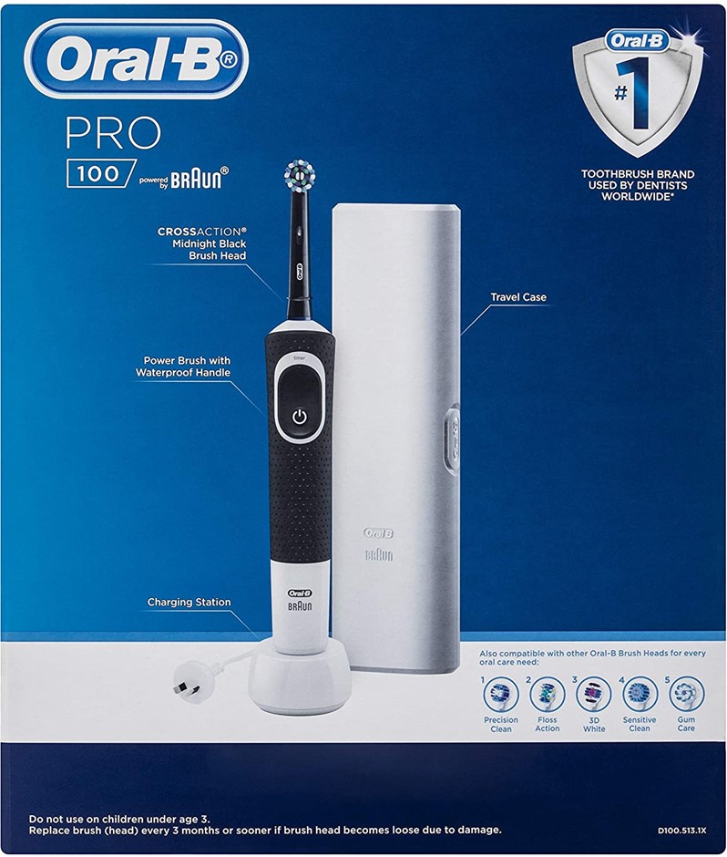 ORAL-B Pro 100 CrossAction Electric Toothbrush, Colour: Black. NB: Minor Used, no brush head (Code: B07TSM3WSR-MU1) (140710-74)