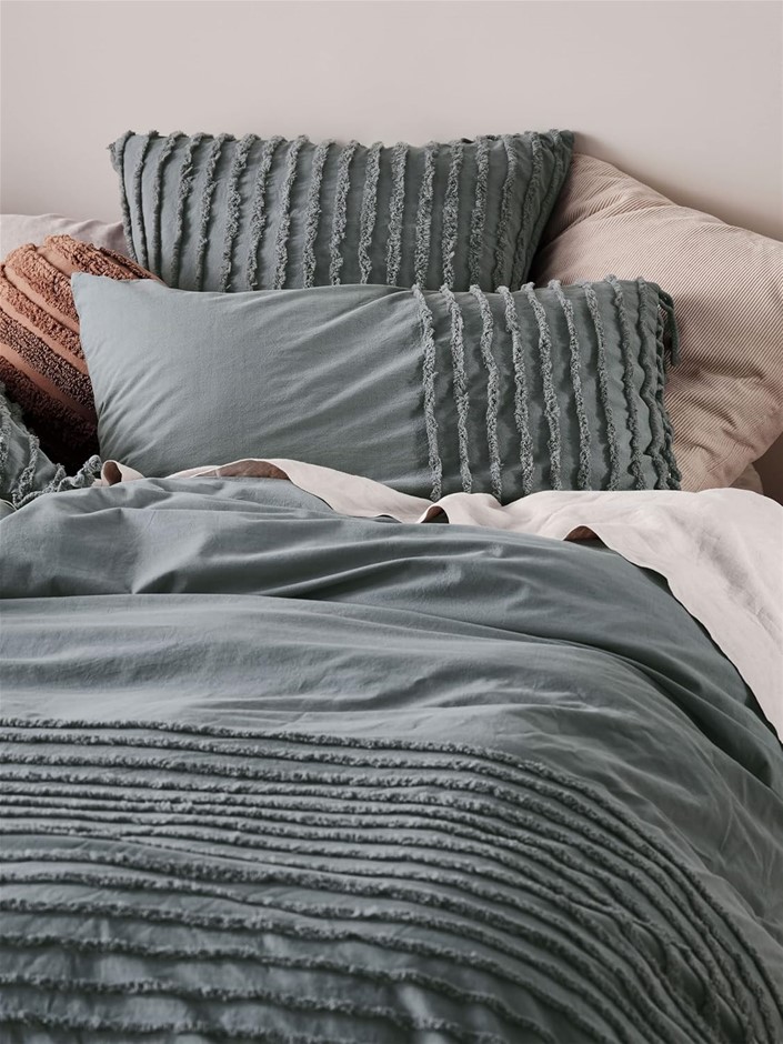 LINEN HOUSE Dunaway Petrol SKB Quilt Cover Set, Blue, Super King, 01705H759. Buyers Note - Discount Freight Rates Apply to All Regional Areas(Code: B09FDQHPC8-NE) (333772-74)
