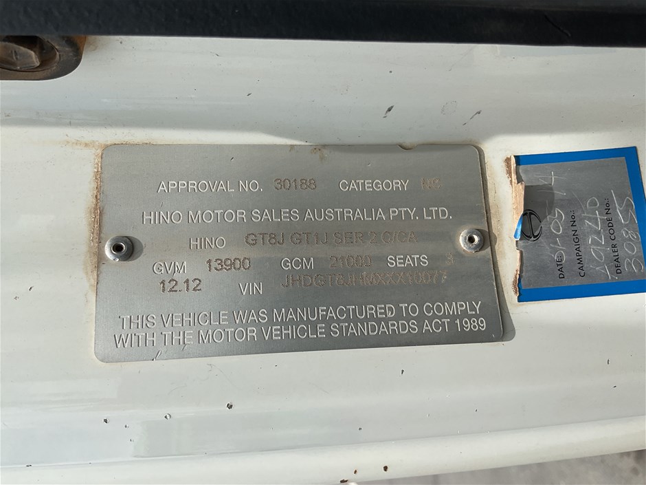 2012 Hino 500 4 x 4 Cab Chassis Truck
