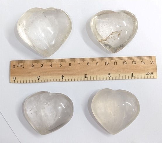 Four Quartz Crystal Carved Stone Polished Love Hearts From Madagascar