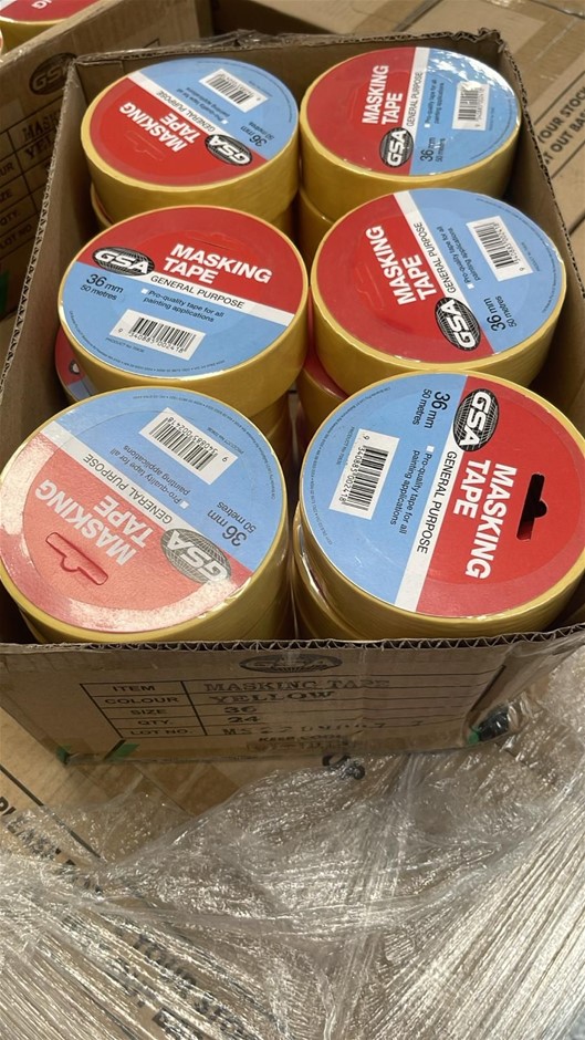 • (Box of 24 Rolls) GSA General Purpose Masking Tape Yellow - 36mm wide. For Painting and Painters