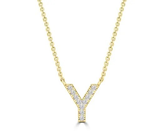 9K YELLOW GOLD `Y` 0.06 HI I1 DIAMOND NECKLACE 40+5cm