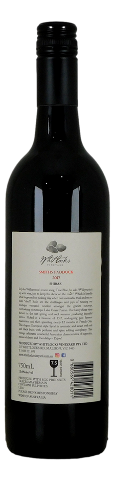 Whitlocks Vineyard Smiths Paddock Shiraz 2017 (1x 750mL), AUS. (333506-4)