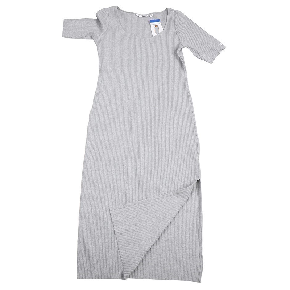 CALVIN KLEIN JEANS Women`s Ribbed Dress, Size M, Cotton/Elastane, Pearl Heather Grey (PLG). Buyers Note - Discount Freight Rates Apply to All Regional Areas(Code: 127426-PHG-M) (334894-77)