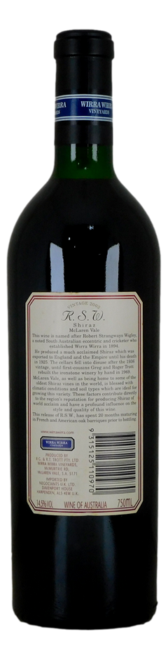 Wirra Wirra R.S.W. Shiraz 2002 (1x 750mL),SA.Cork Closure (331981-22)