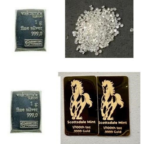 1/100 Gold Scottdale, 1 Gram Silver x 2 & 1.00 carat Diamond off White