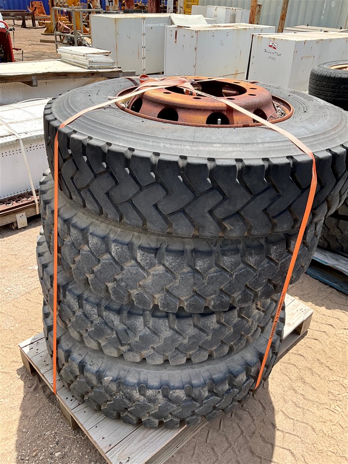Pallets of 11R 22.5 Rims and Tyres x 4